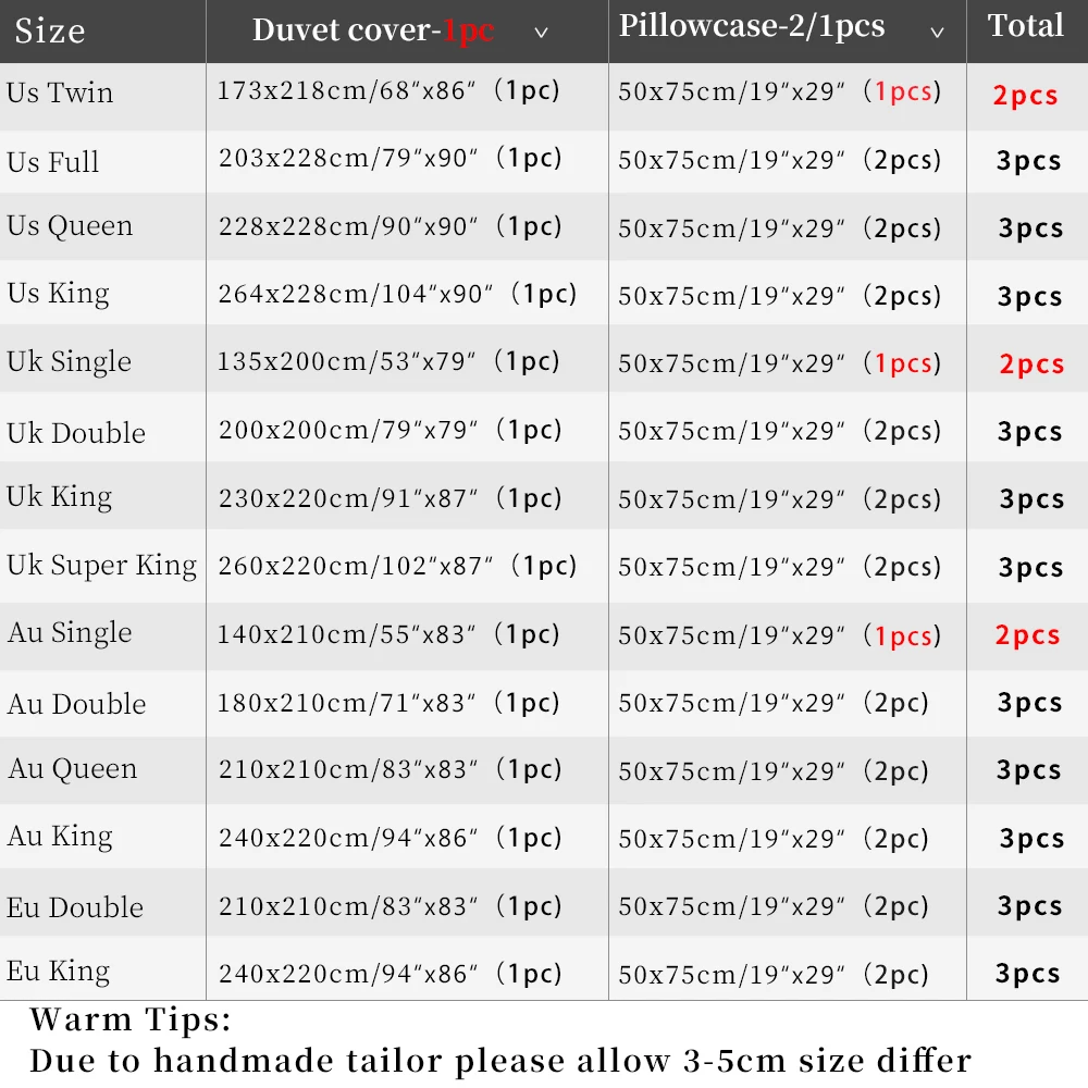 Упаковочный лист: 1 * пододеяльник + 1 * наволочки/2 * наволочки