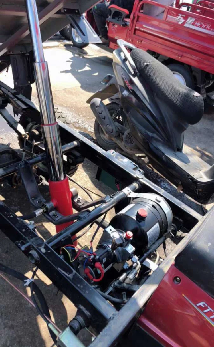 This product is an electronically controlled hydraulic dump kit for tricycles.