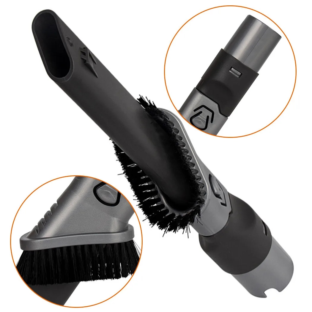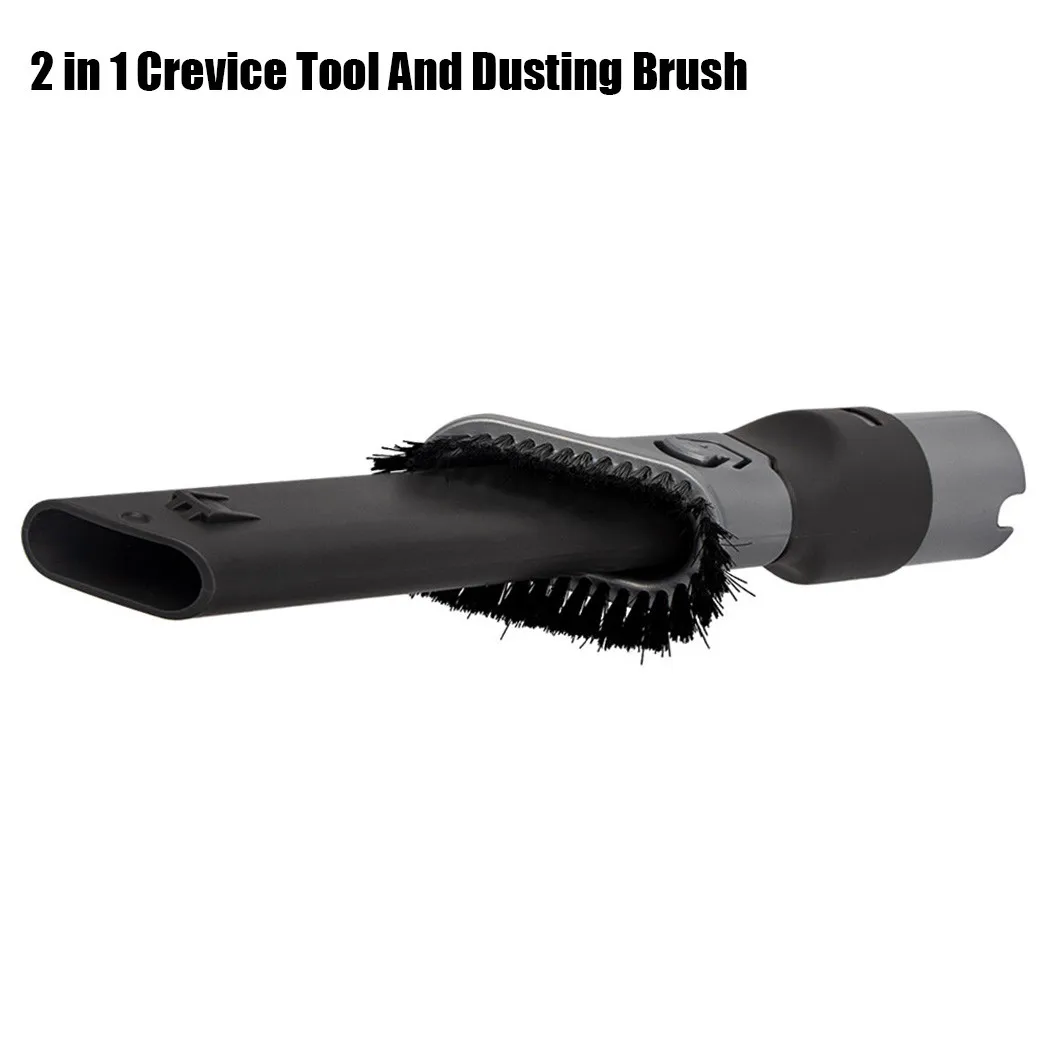 * 2 в 1 комбинированный инструмент, включающий щелевой инструмент для труднодоступных зон + Пылезащитная щетка для штор, обивки и т. Д.