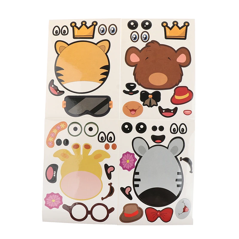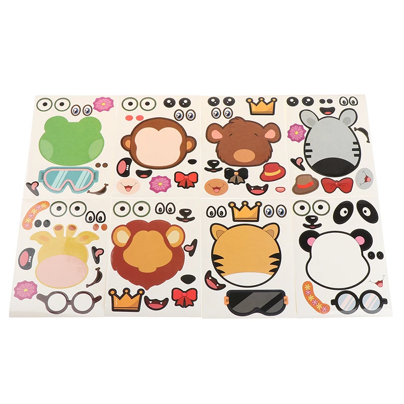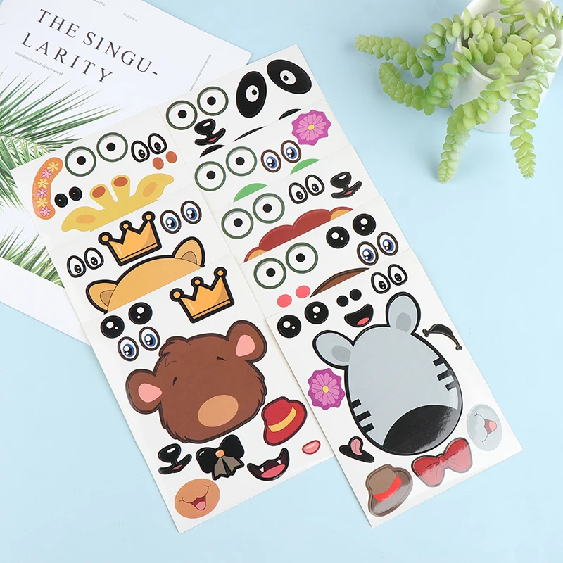 8 листов/набор детские забавные головоломки игры Сделай Сам лицо Животные наклейки на головоломки подарок креативные наклейки детские игрушки