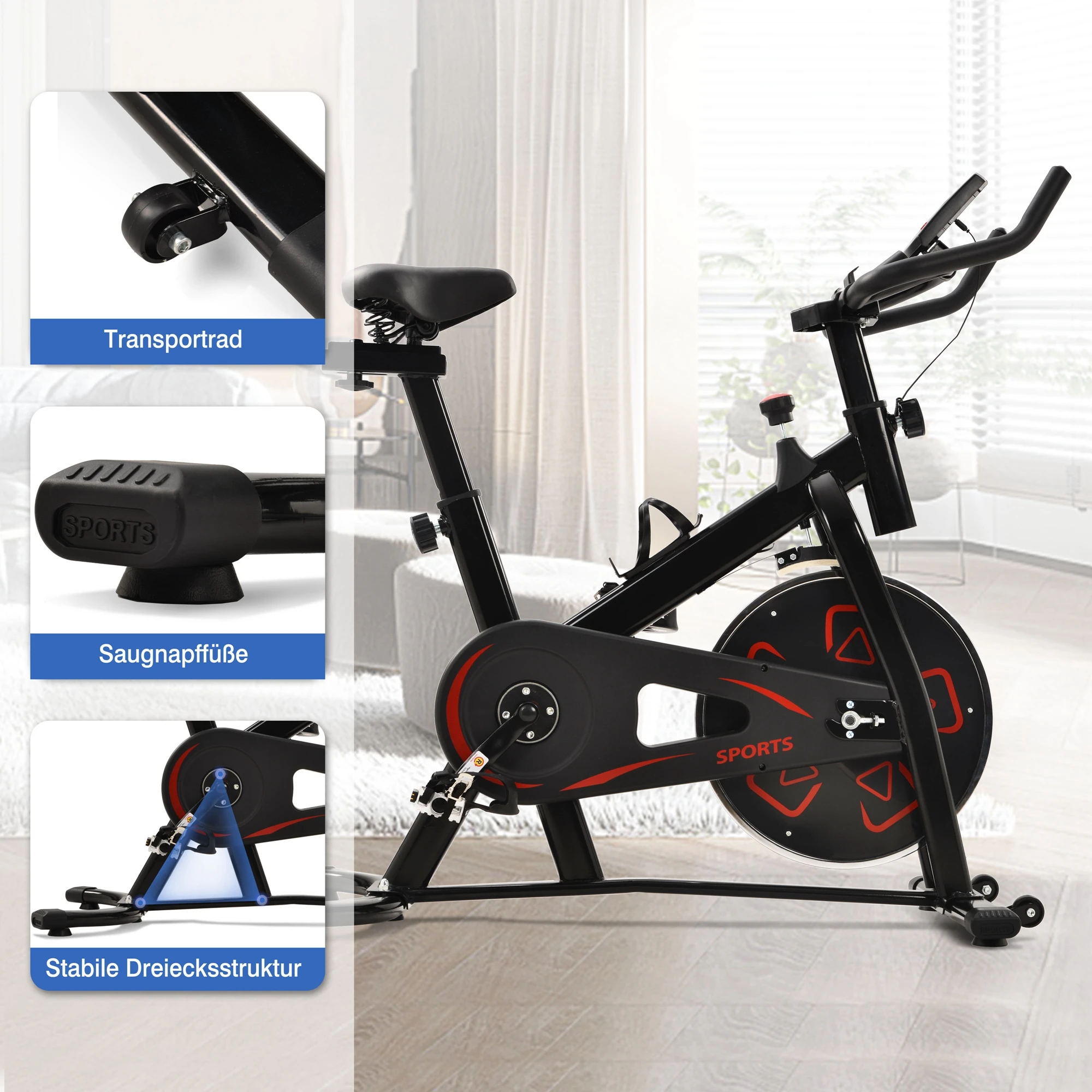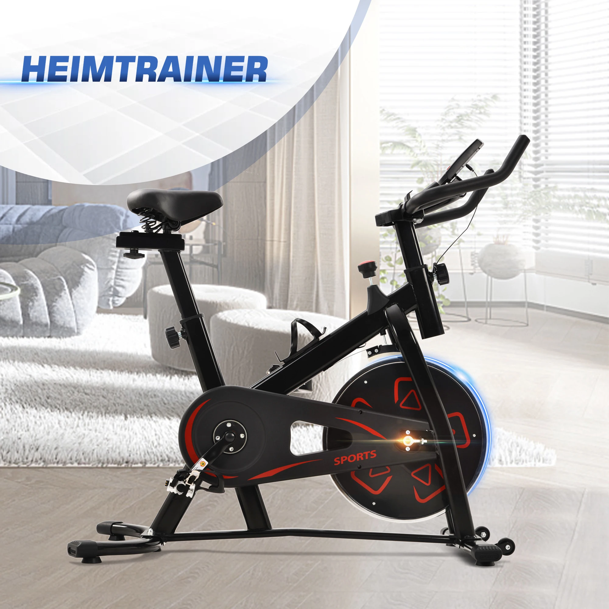 Dieses Fahrrad ist perfekt für den Heimgebrauch und ermöglicht es Ihnen, Kalorien leicht zu verbrennen. Der verstellbare, gepolsterte Sitz und der Lenker bieten eine personalisierte Trainingszeit. Ein integrierter Wasserflaschenhalter in Armlänge ermöglicht es Ihnen, während dieser intensiven Cardio-Workouts gut hydriert zu bleiben. Mit der Widerstandsfunktion können Sie den Widerstand ganz einfach anpassen, um ein härteres oder einfacheres Training zu erleben. Die Schwungräder sind auf Geschwindigkeit und Stabilität ausgelegt und vermitteln das Gefühl eines echten Rennrads. Der stabile Stahl-Aluminium-Rahmen sorgt für extreme Langlebigkeit. Einfache Montage erforderlich; klare Installationsanleitung im Paket enthalten.