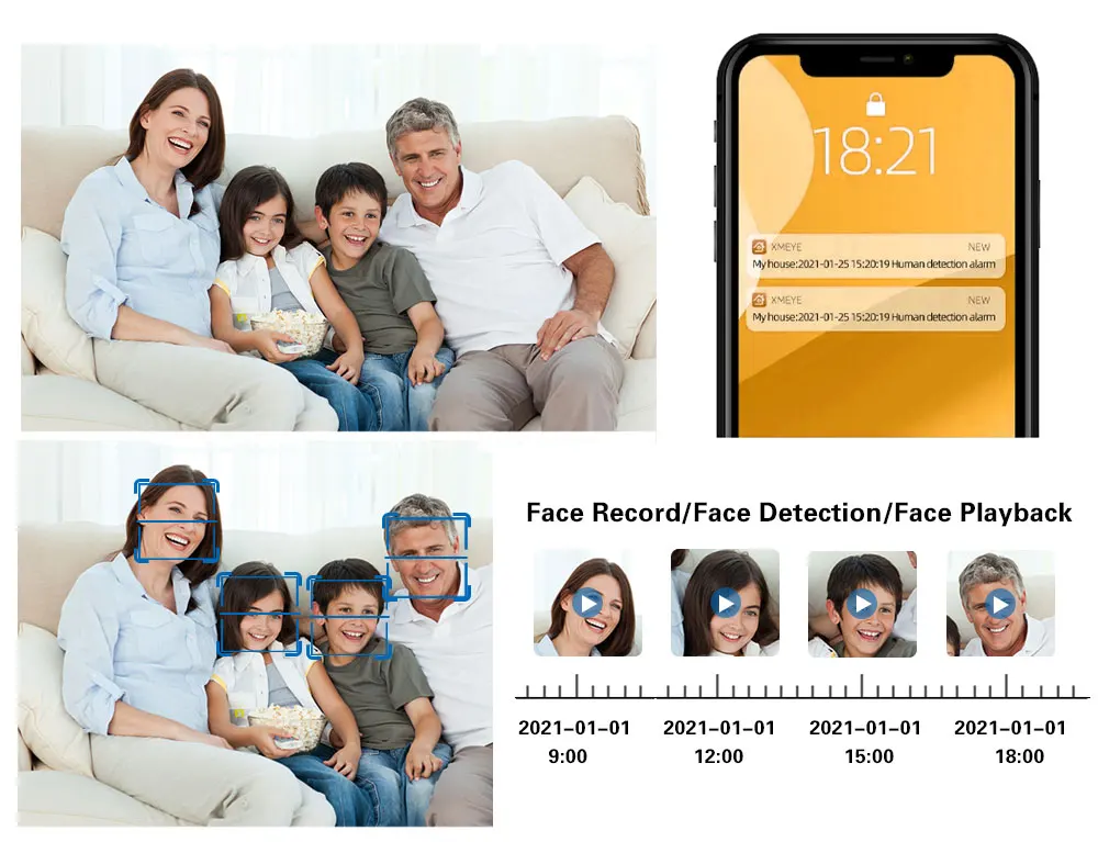 Обнаружение лица, воспроизведение лица и запись лица; Быстрое снятие изображений лица и быстрое воспроизведение видео лица; Распознавание лица: автоматическое снятие изображений лица; Интеллектуальное воспроизведение лица: интеллектуальное воспроизведение видео лица, экономия времени, не пропустите все детали.