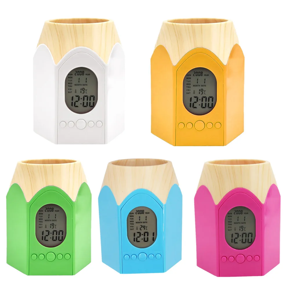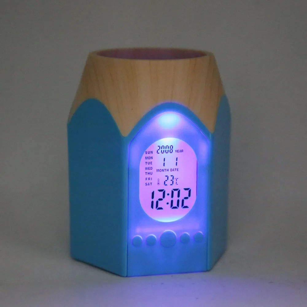 Это настольный Контейнер для дома/офиса с будильником, температурой, светодиодный календарем и датой, работающий от 3 батареек AAA (не входят в комплект).