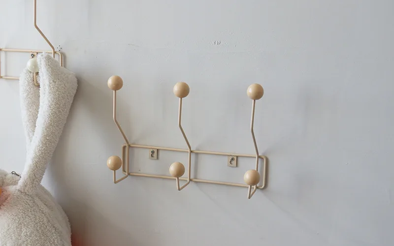 Винтажный корейский крючок для одежды, украшение для комнаты, магазин одежды, простая усовершенствованная вешалка, крючок для хранения из массива дерева, кремовый Железный крючок Ins