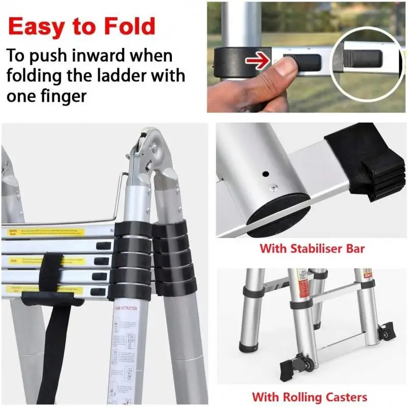 5 метров регулируемая телескопическая промышленная алюминиевая лестница из алюминиевого сплава складная телескопическая лестница аксессуар для домашнего строительства