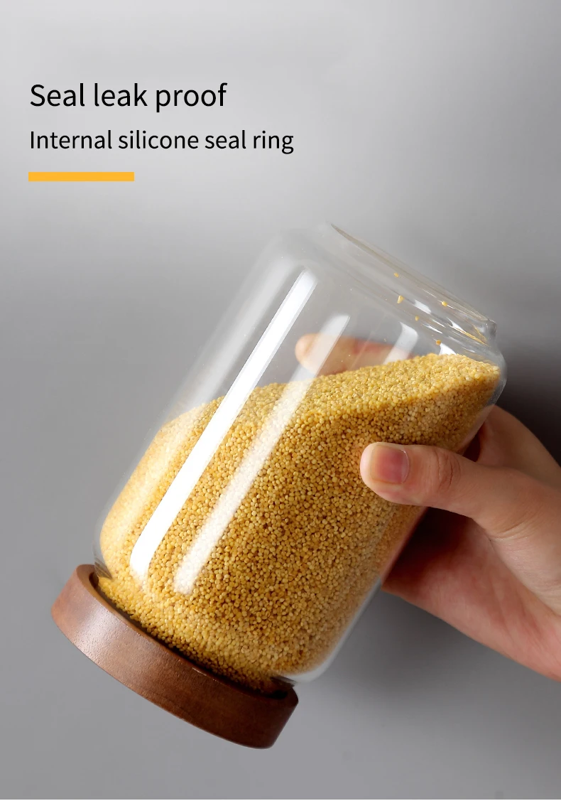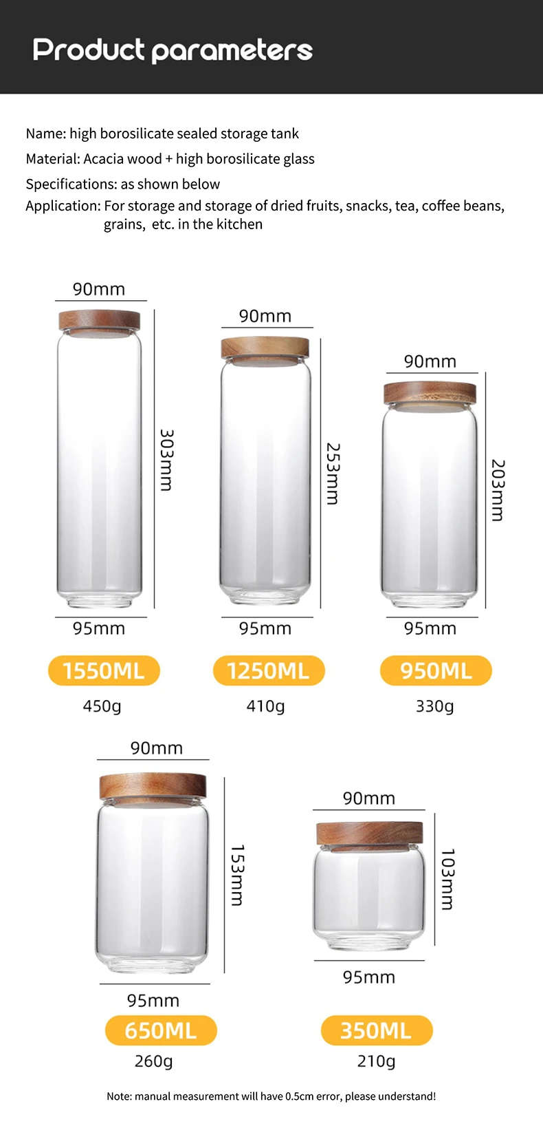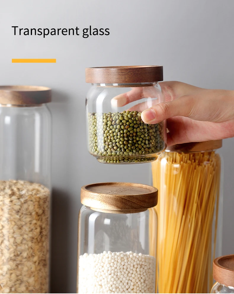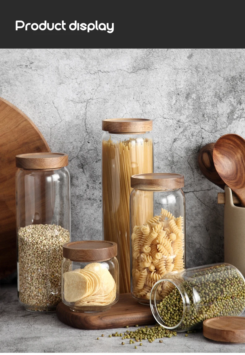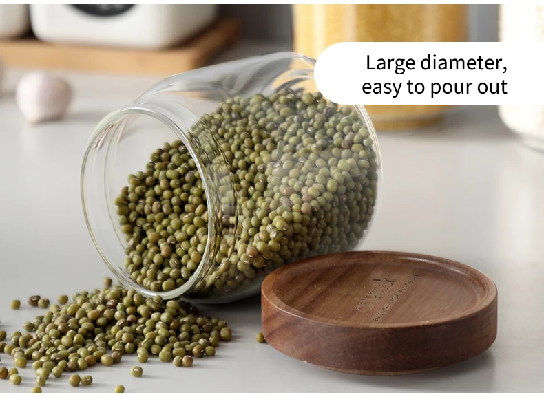 Герметичные стеклянные банки с деревянной крышкой, чайные банки с круглой крышкой, кофейные Кондитерские банки для еды, зерновые специи, хранилище для кухни