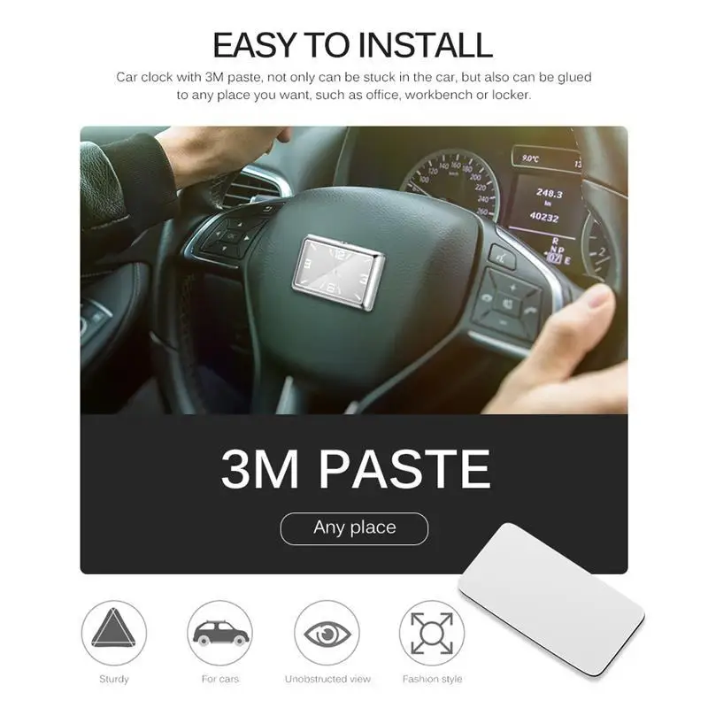 Автомобильные часы с пастой, не только могут быть застревают в машине, но также могут быть приклеены к любому месту, которое вы хотите, например, офис, верстак или шкафчик.