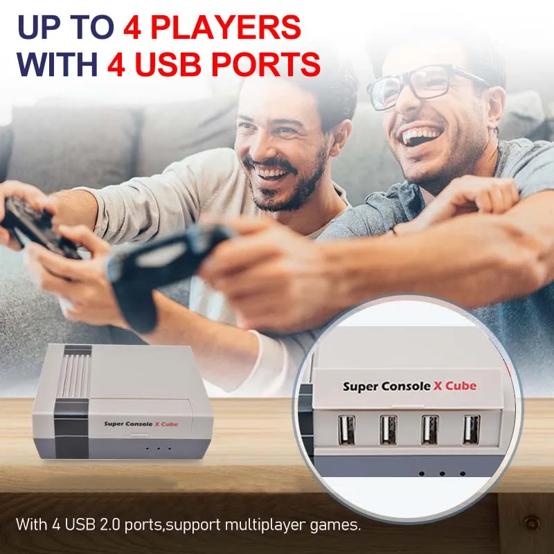 Консоль Cube оснащена двумя контроллерами, вы можете выбрать в соответствии с вашими предпочтениями, проводной/беспроводной геймпад, подключи и играй, поддержка многопользовательских игр, до 4 человек, наслаждайтесь игрой с семьей и друзьями.