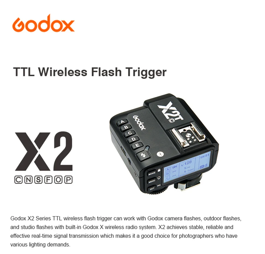 Беспроводной триггер Godox X2 серии TTL может работать с вспышками Godox, вспышками на открытом воздухе и студийными вспышками со встроенной беспроводной радиосистемой Godox X. X2 обеспечивает стабильную, надежную и эффективную передачу сигнала в реальном времени, что делает его хорошим выбором для фотографов, у которых есть различные требования к освещению.