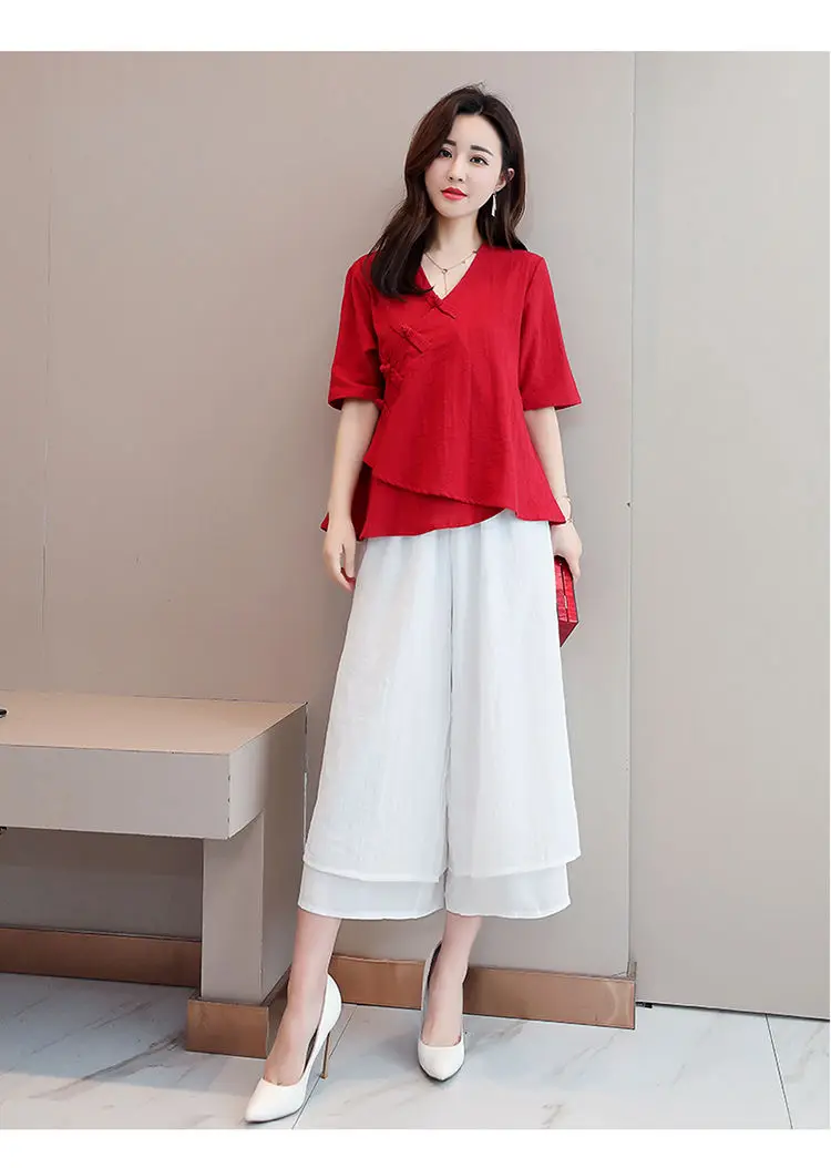 Летние повседневные топы для женщин, традиционная китайская одежда, необычный Cheongsam топ с v-образным вырезом, однотонная женская рубашка Qipao
