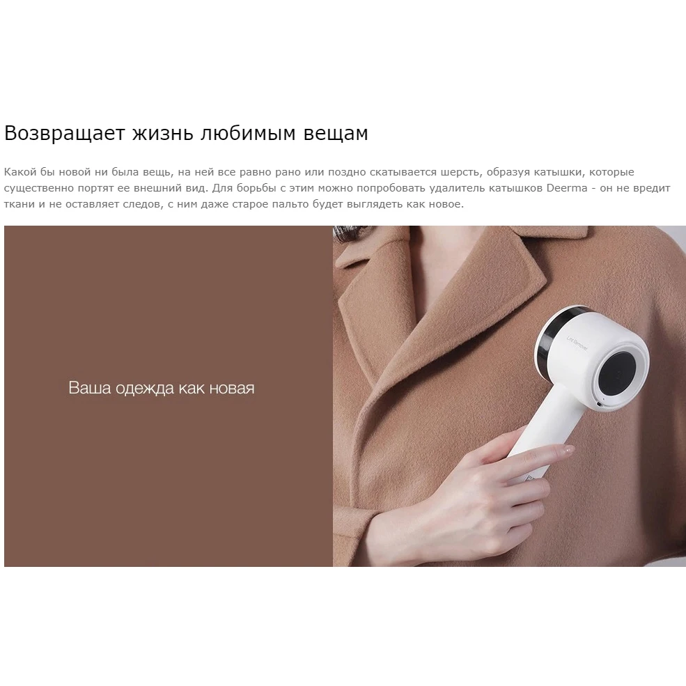 Xотите, чтобы Ваши вещи всегда выглядели кaк новенькие? Машинка для катышков Xiaomi Deerma Rechargeable Lint Remover - инновационное решение для уходa за плотными тканями. Применять устройство рекомендуется для удаления неопрятных катышек с пальто, свитeров, покрывал или подушек.