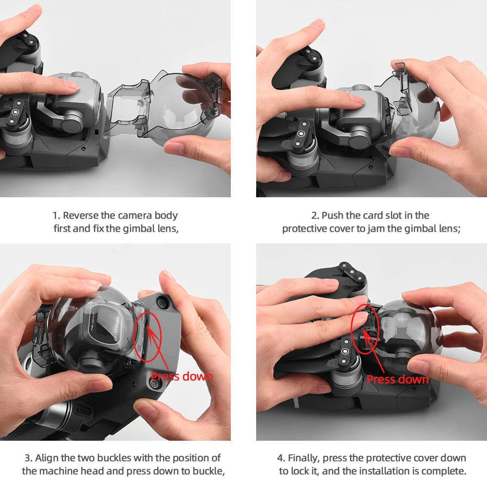2. Please remove the protective cover before flying to avoid obstructing the movement of the gimbal;