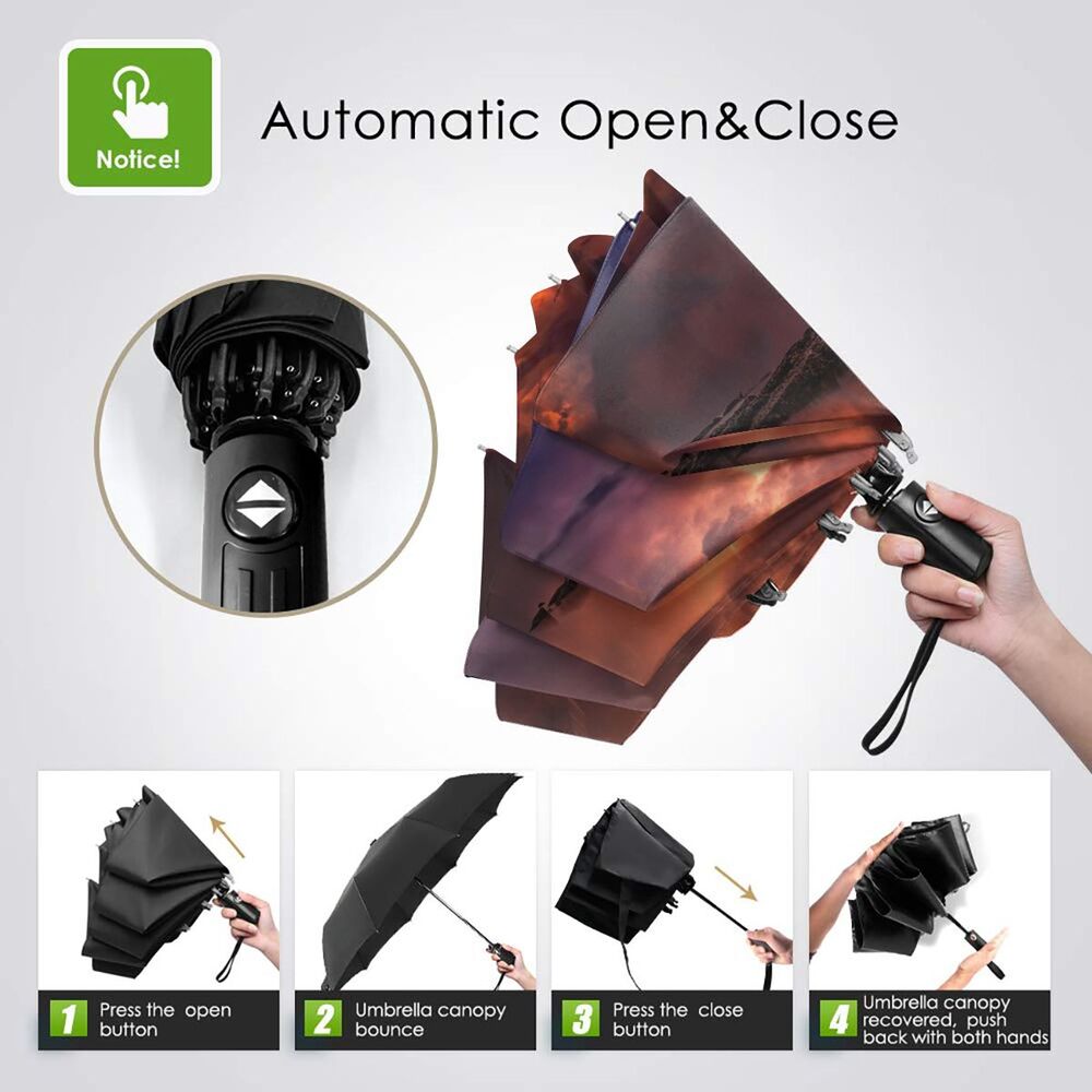 3. Откройте и закройте за считанные секунды: одним нажатием кнопки Зонт автоматически открывается и закрывается. Отлично подходит для быстрого входа в автомобиль, здание или палатку. Простой и простой в использовании всего 1 рукой.