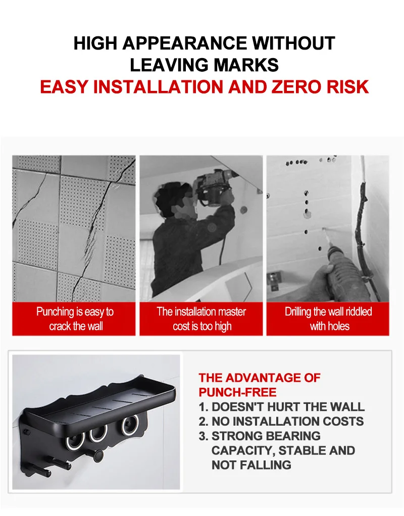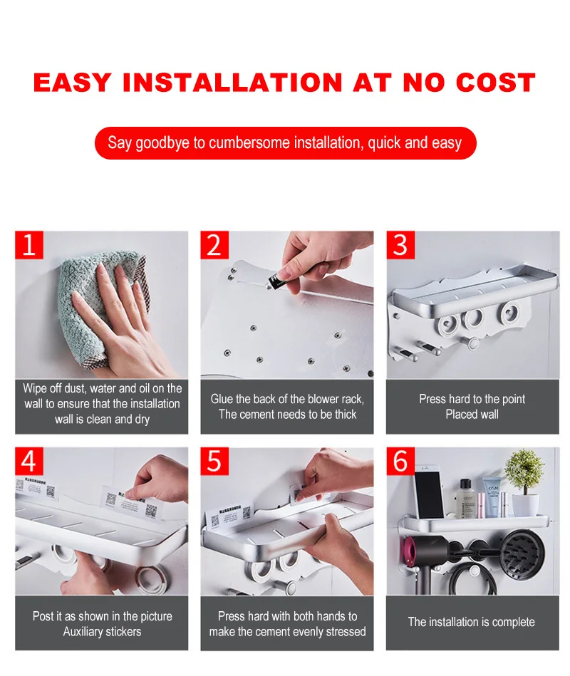 Стеллаж для хранения волос, черный алюминиевый кронштейн, приклеенный для волос Dyson, настенный аксессуар для ванной комнаты