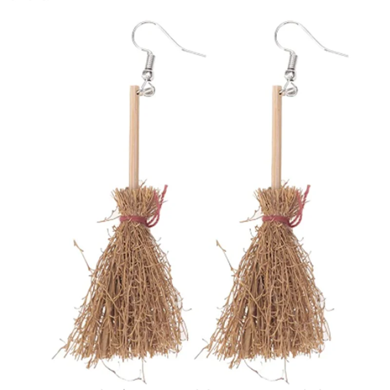 Натуральные плетеные вручную серьги в виде метлы ведьмы и сорго, украшения на Хэллоуин для женщин, жуткая Волшебная беседа ведьмы цвета дерева 1,5*6 см