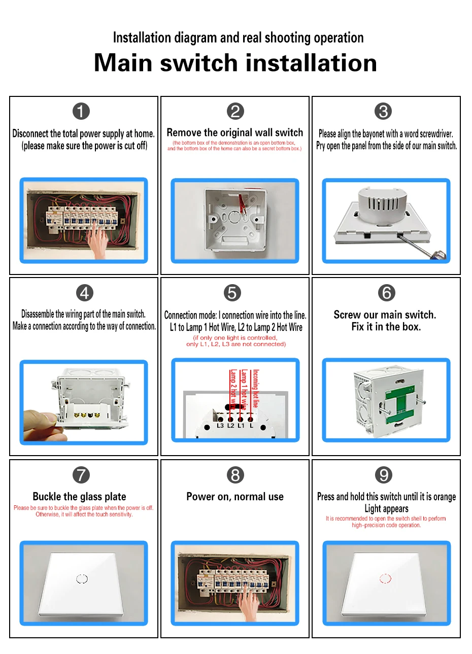 8. Управление одним проводом в режиме реального времени, простота установки, замена старого переключателя непосредственно.