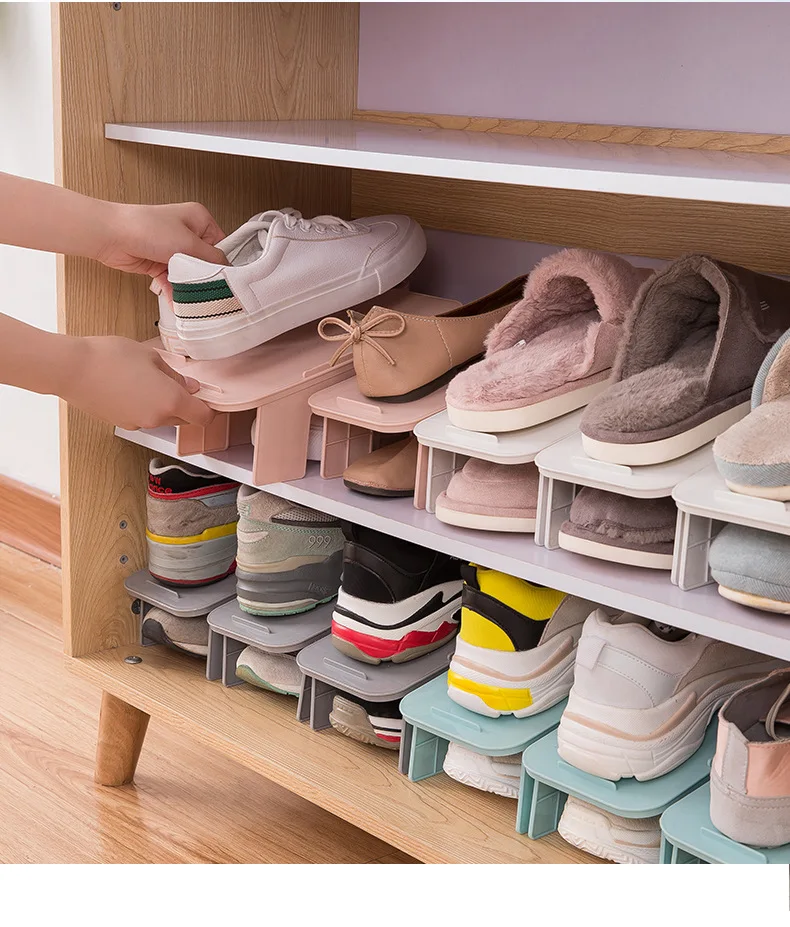 Пластиковая двухслойная Съемная Простая Стойка для обуви, креативная стойка для хранения обуви, органайзер для бытовой обуви, 4 цвета