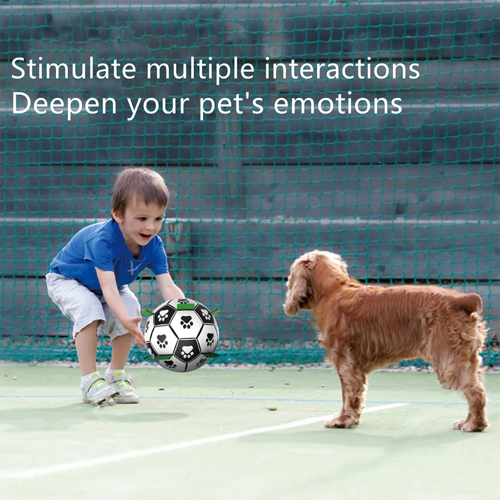 Обновление интерактивная игрушка для собак: собачьи футбольные мячи с нейлоновыми язычками, равномерно вшитыми в швы, не только создают неровный отскок, который собаки любят гоняться, но и облегчают собакам брать, бросать, потяните и извлеките. Лапы собаки напечатаны равномерно на игрушки для собаки мяч, чтобы привлечь внимание собак. Есть более длинный ремешок для людей, чтобы держать мяч, что делает его отличным интерактивная игрушка для собак дрессировки ваших собак.