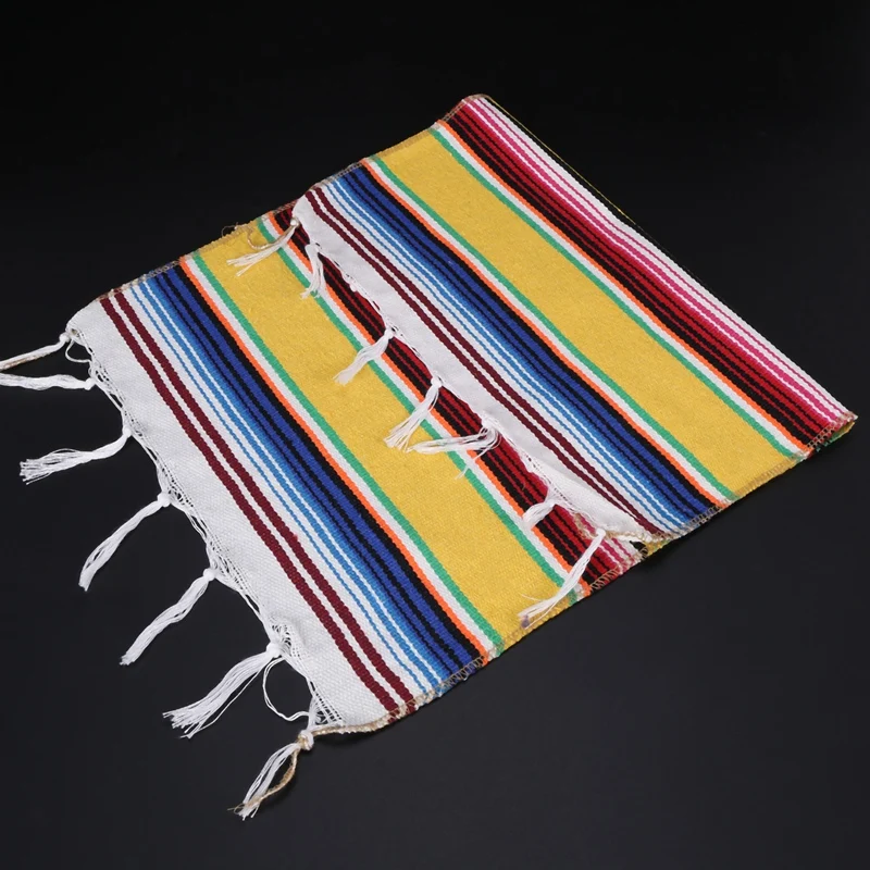 Blanket table cloth in classic mexican false stripe pattern with vivid psychedelic colors, this table runner is sewn on all four sides, not easily loose thread
