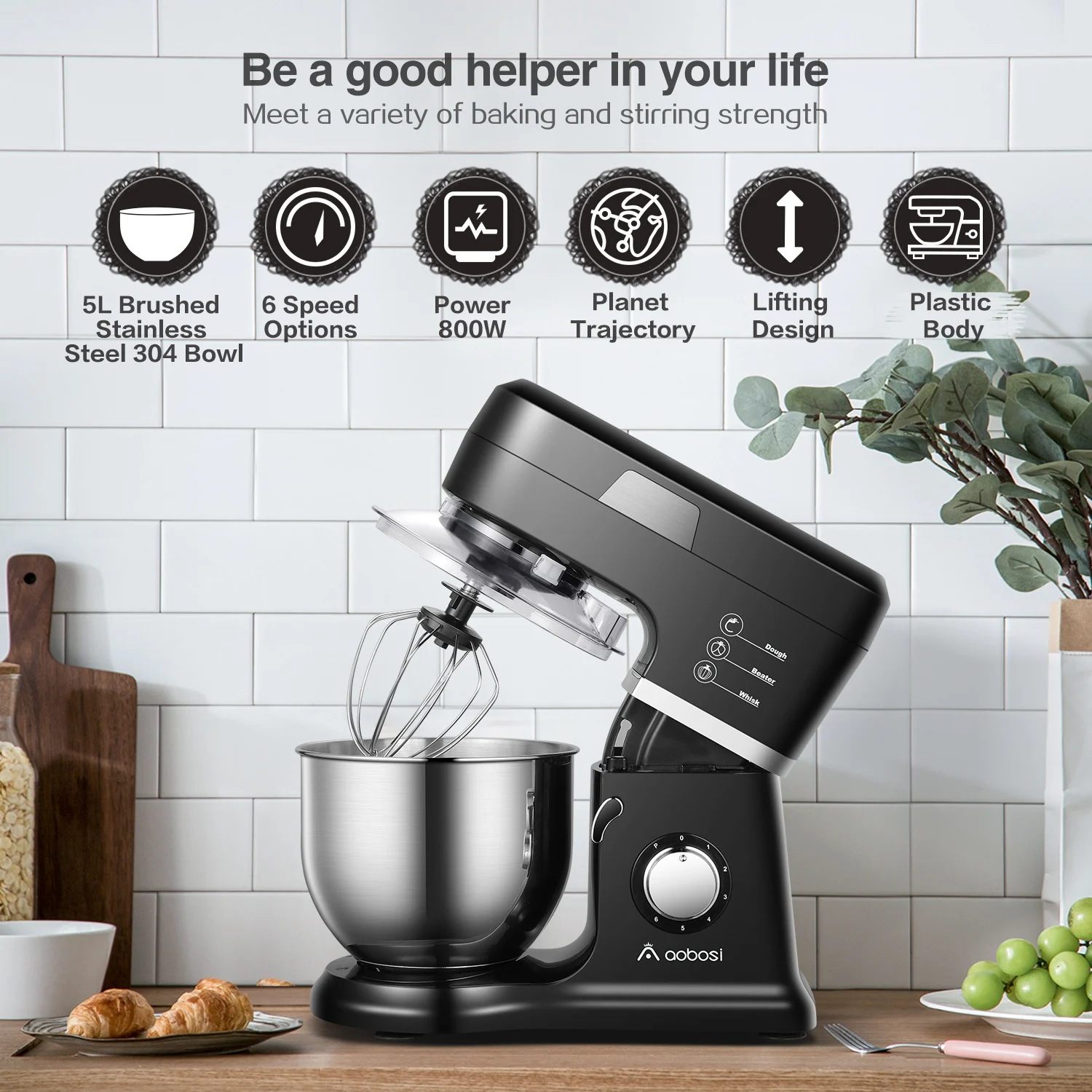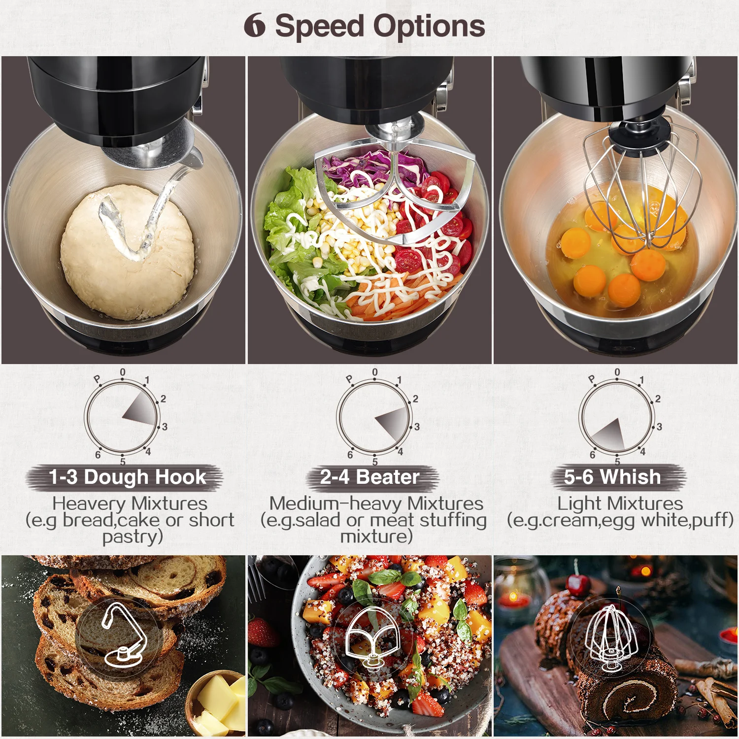 Тесто для замеса: крюк c-формы смешивает и разминает муку с помощью 800 г, как правило, за один раз