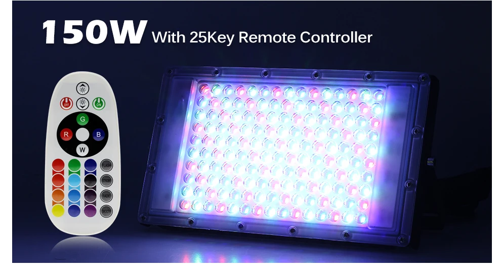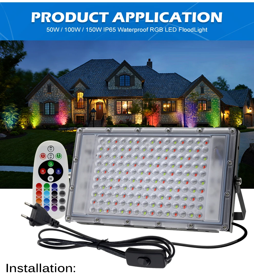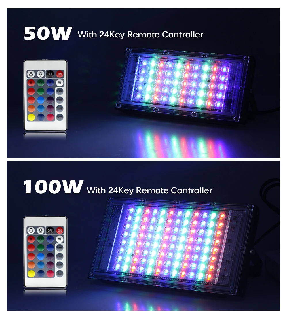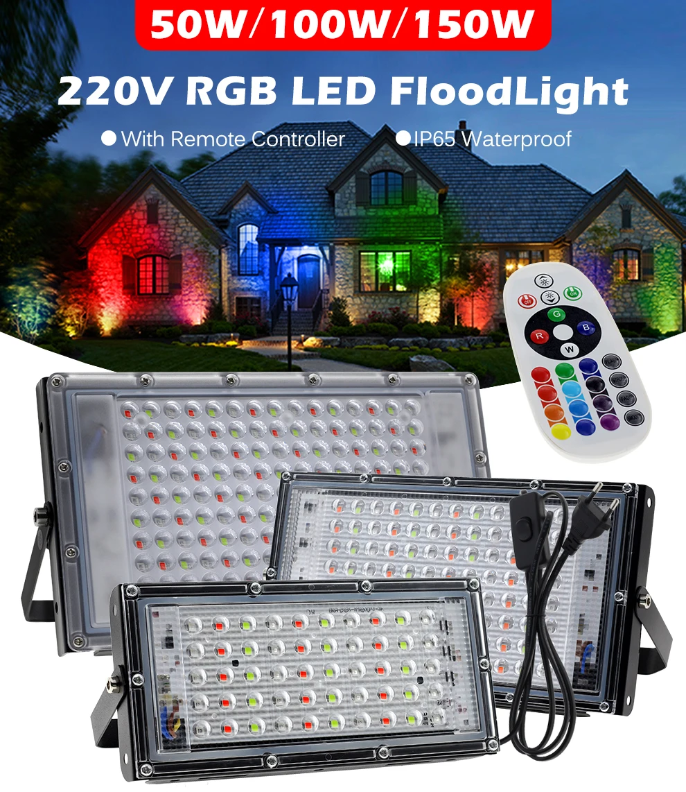 Светодиодный прожектор 50 Вт 100 Вт 150 Вт, светодиодный прожексветильник RGB, точесветильник ильник В переменного тока, светодиодный уличный фонарь, ландшафсветильник, с пультом дистанционного управления, вилка ЕС