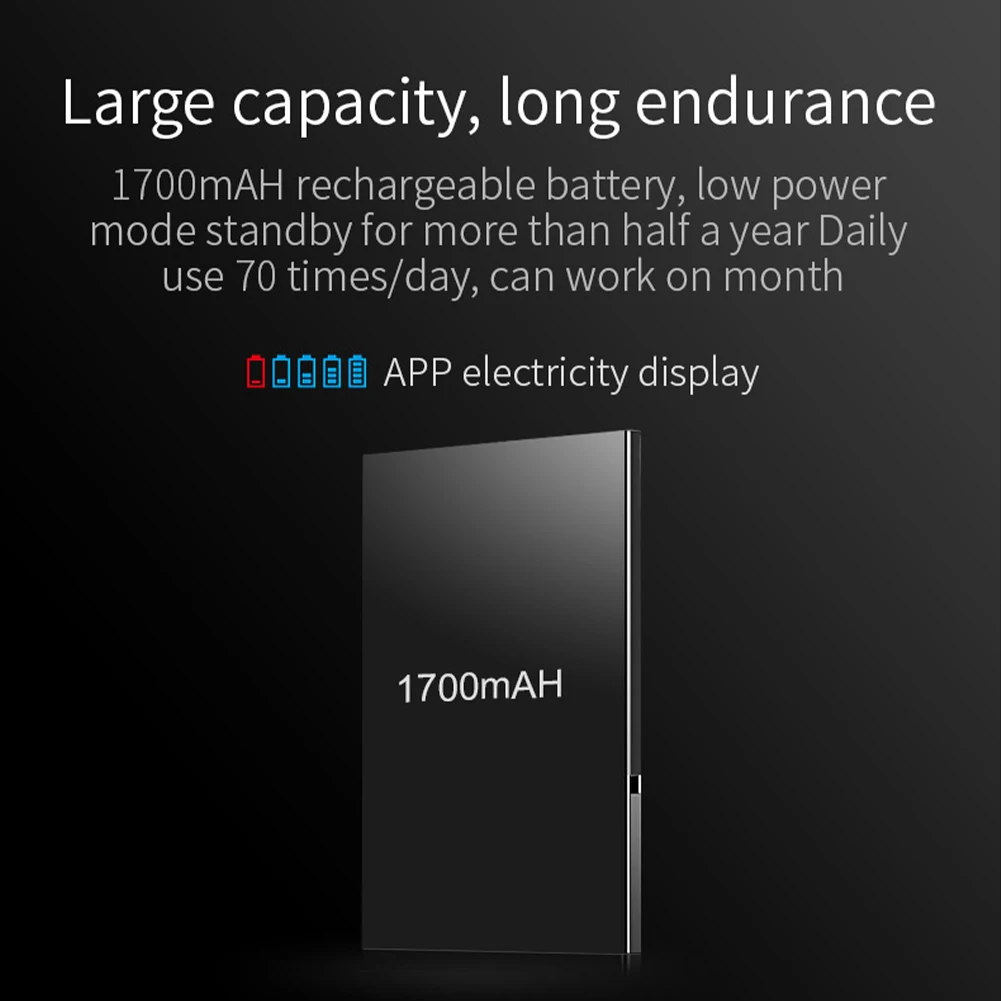 * 2. Встроенной перезаряжаемой батареи 4,2 в/1700 мАч хватает примерно на один месяц (Используйте 70 раз в день) на одну зарядку и в режиме ожидания более полугода, поддерживает напоминание о низком заряде батареи и зарядку через USB 5 В/1 А.