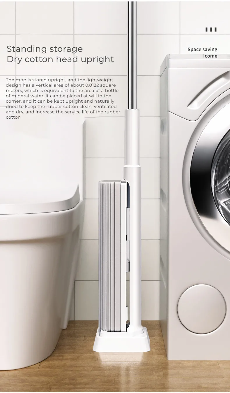 Швабра находится в вертикальном положении, независимая основа, слив не размножает бактерии,Предотвращает деформацию резиновой хлопковой головки и легкий дизайн