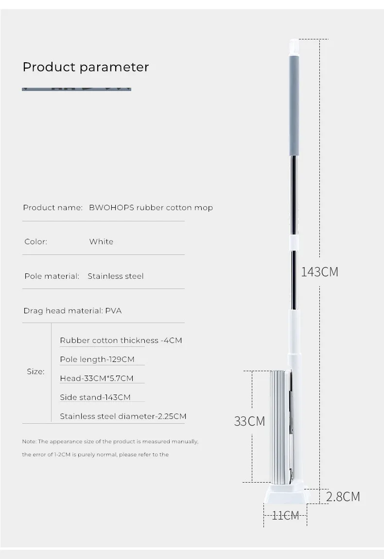 Параметры продуктаНазвание продукта: BWOHOPS резиновая хлопковая ШвабраЦвет: белый