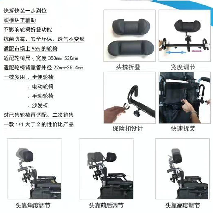 Этот тип подголовника крепится на задней части инвалидной коляски. В настоящее время диаметр трубы задней части инвалидной коляски составляет 22 мм и 25 мм. Пожалуйста, обратите внимание при размещении заказа