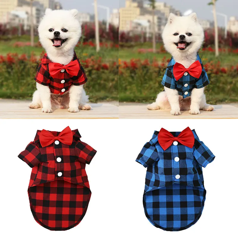 Рубашки для собак, рубашки для домашних животных, рубашки с галстуком-бабочкой, универсальные клетчатые рубашки для собак, милые товары для домашних животных, удобные