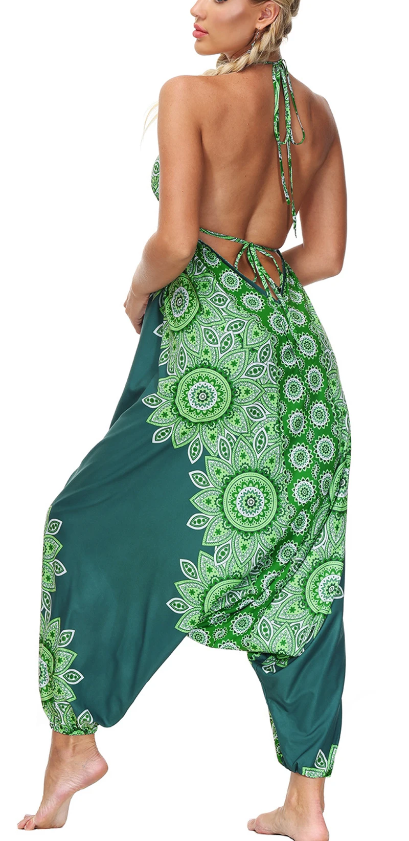 Boho Stylish: Flowers Floral Printed Jumpsuits, African print Jumpsuits, Casual Comfy Rompers, Drawstring closure Jumpsuits, Exquisite prints and thoughtful designs will bring a good mood to your holiday!