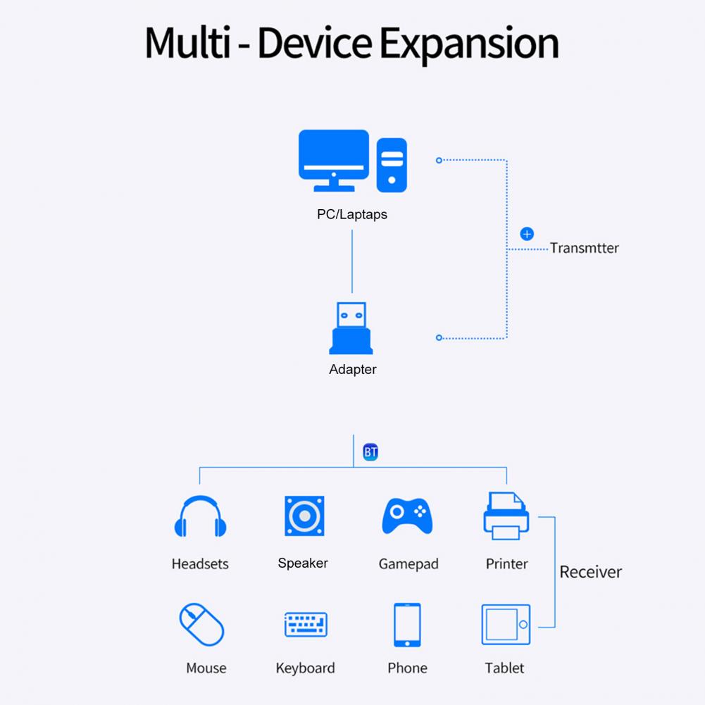 Bluetooth-совместимый передатчик поддерживает функции Bluetooth-совместимого приема и передачи. Подходит для динамиков, смартфонов, телевизоров, ноутбуков, настольных компьютеров, наушников, мыши, клавиатуры и т. д.
