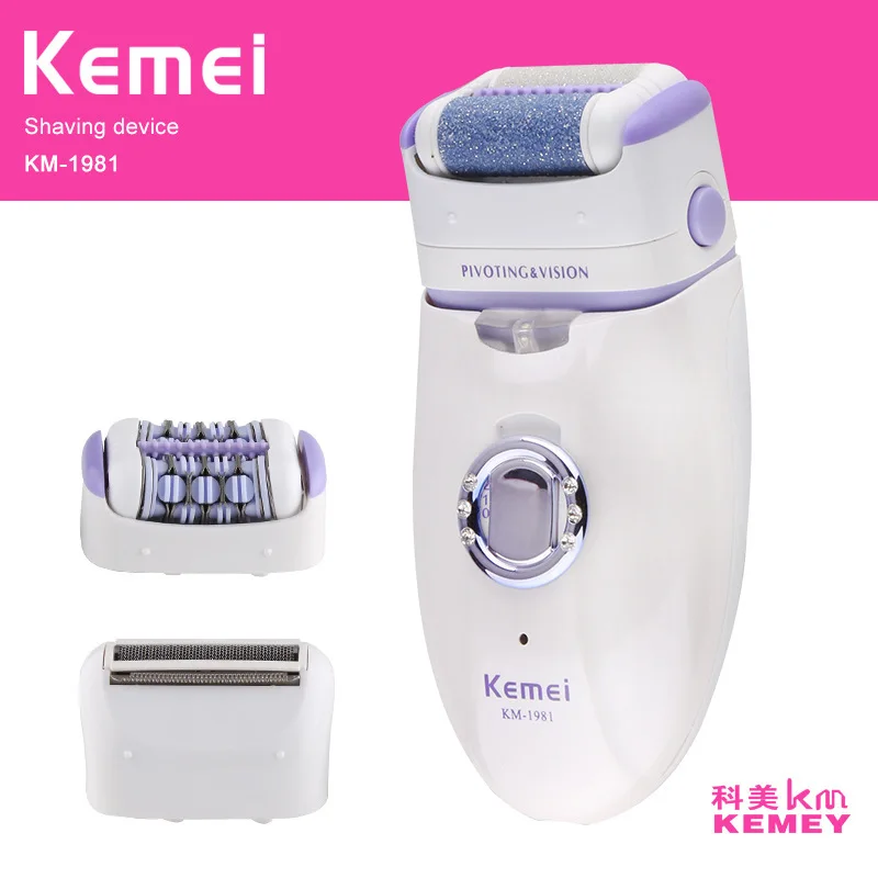 Kemei 3 in 1 Women Epilator Electric Female Face Hair Removal Lady Shaver Bikini Trimmer Body Depilatory Rechargeable Depilation