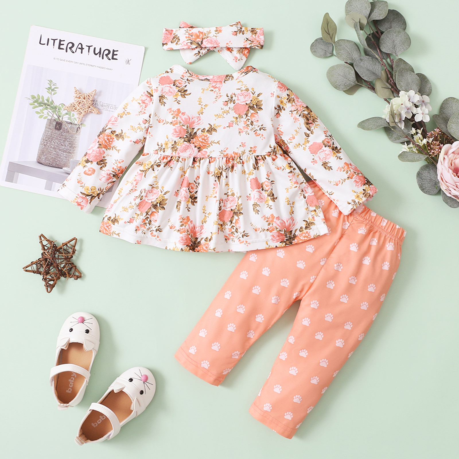 Комплект одежды для маленьких девочек: Топ в стиле пэчворк + штаны с цветочным принтом + повязка на голову