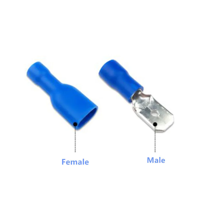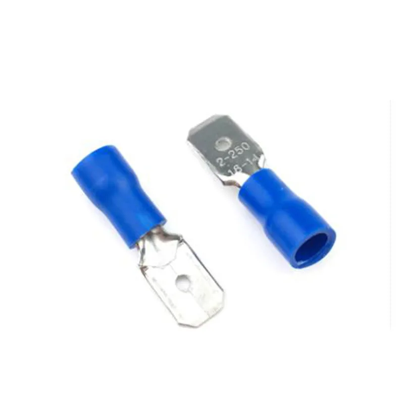 100 шт. 50 пар 6,3 мм 16-14AWG Женский Мужской Разъем для электрической проводки изолированный обжимной терминал Лопата синий FDFD2-250 MDD2-250