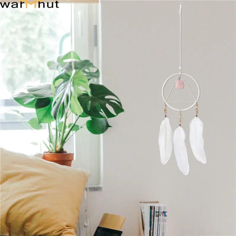 【Handmade & Boho Style】 - Made of beautiful rose quartz crystal and handmade white feathers, full of bohemian feelings. You can also add some LED light decor to add romantic atmosphere.