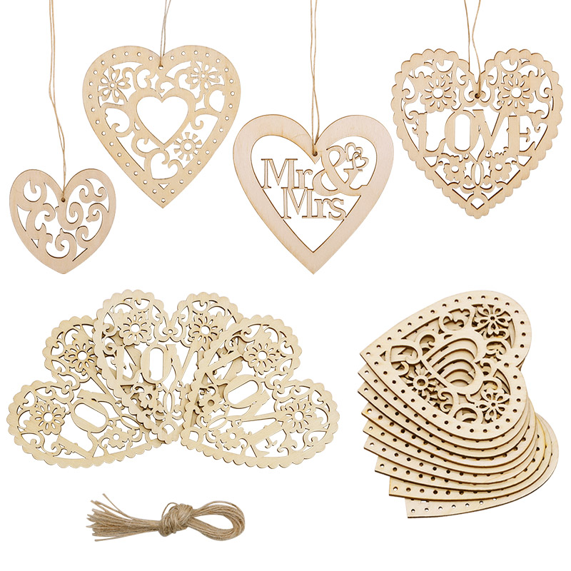 Деревянные Свадебные украшения, лазерная резка, любовь, сердце, висячие украшения, деревянная коробка для колец, Mr Mrs, Деревенское свадебное украшение