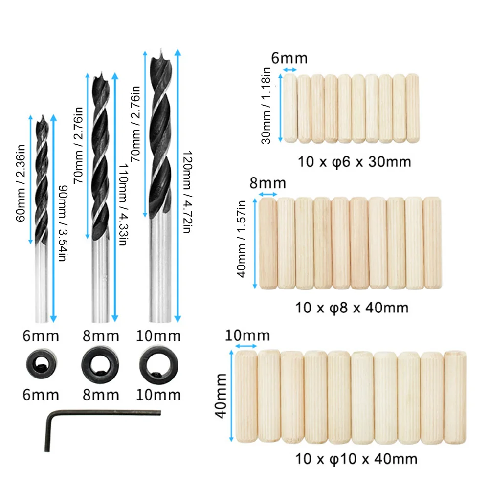 Деревообрабатывающее сверло руководство и дюбель джиг набор удобен и практичен для использования в управлении глубиной сверления и в дюбелировании. Это идеальный деревообрабатывающий инструмент!