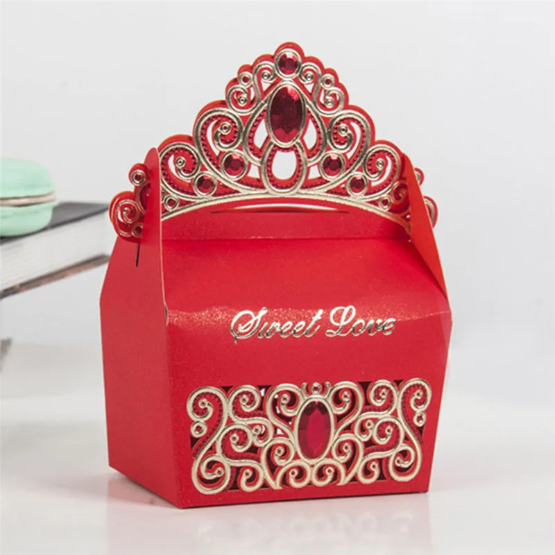 50pcs Crown Favor Boxes Candy Boxes Paper DIY For Wedding Party Sweety Box Treat Kids Birthday Girl Party Supplies Table Decor