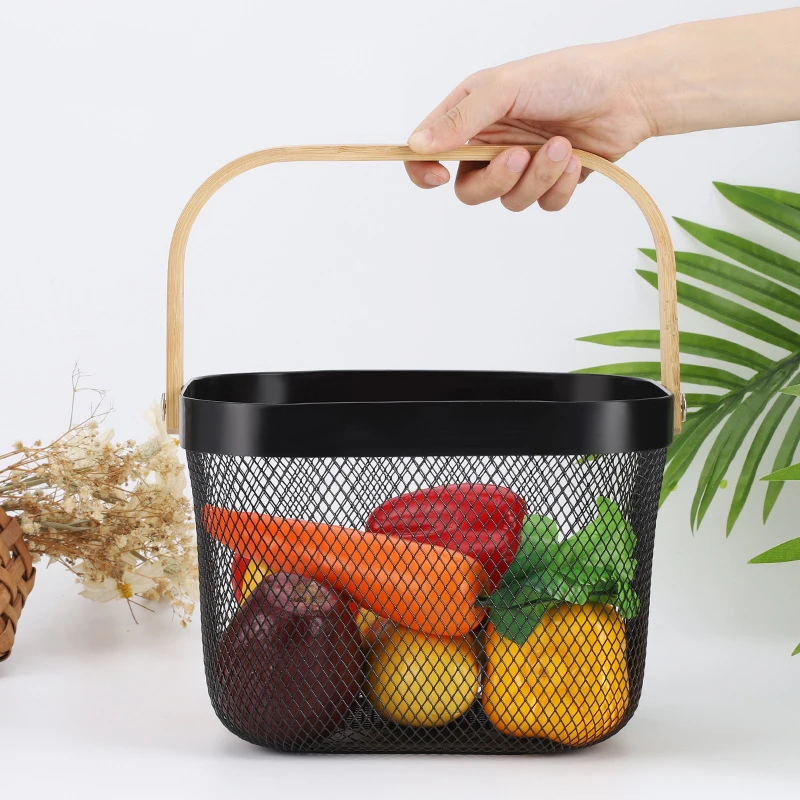 Пустотелая корзина для фруктов, конструкция большой вместимости, деревянная ручка, гладкая и прочная, простая и практичная по форме. Вентиляция не накапливает воду, влагостойкость и плесень, подходит для различных сцен. Заклепки усилены, а емкость для взвешивания лучше. Можно разместить в гостиной, спальне, кухне, ванной комнате и т. д.