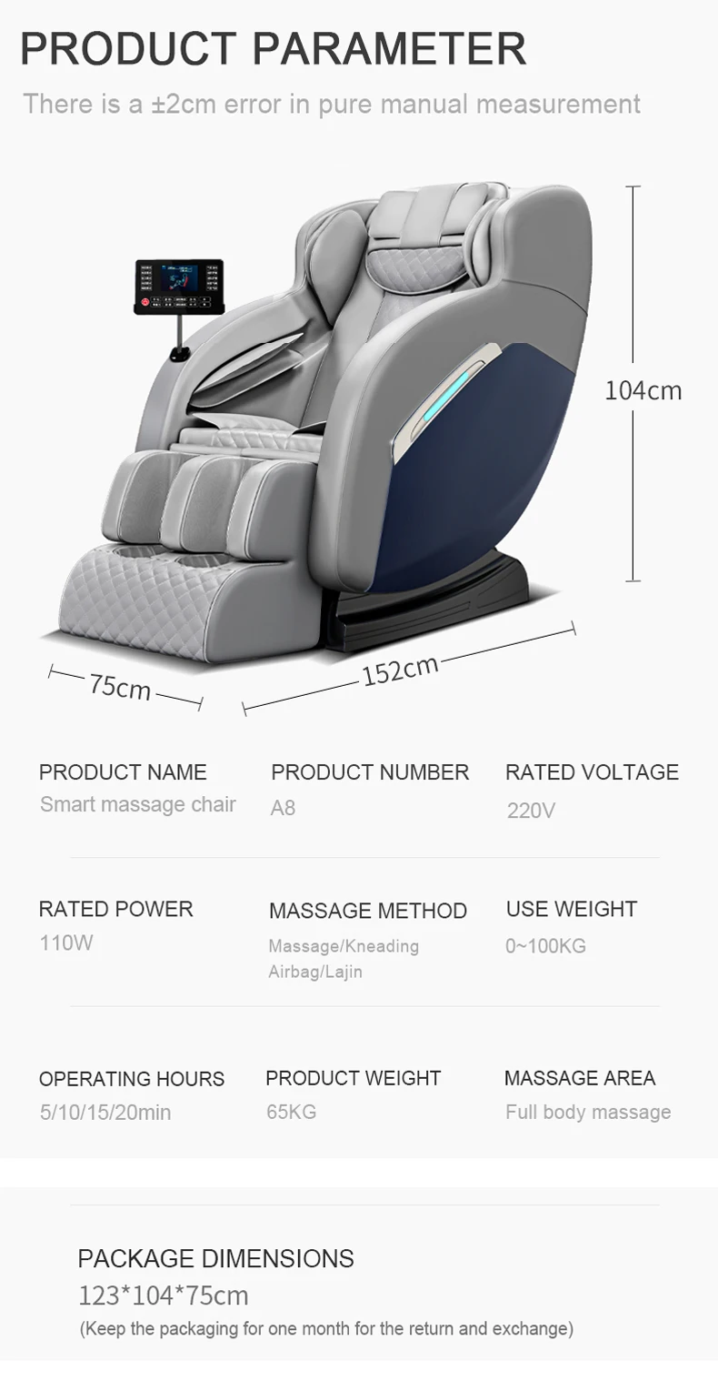①Обязательно прочитайте размер входного массажного стула на веб-сайте перед покупкой, чтобы убедиться, что массажное кресло может пройти через вашу дверь гладко! (Если размера недостаточно, пожалуйста, обратитесь в онлайн-службу поддержки клиентов)