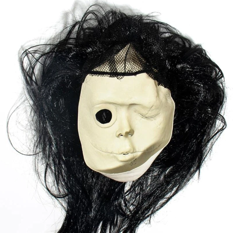 Эта страшная женская маска-призрак с длинным прямым париком для волос подходит для любителей маски ужасов или коллекционеров.