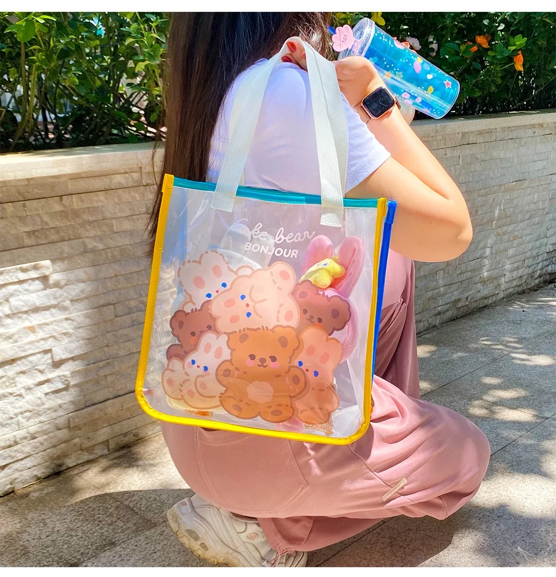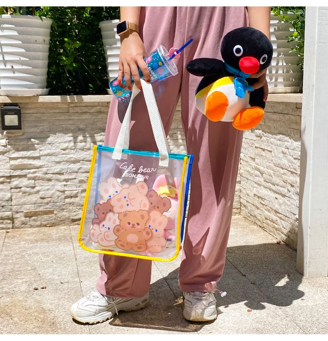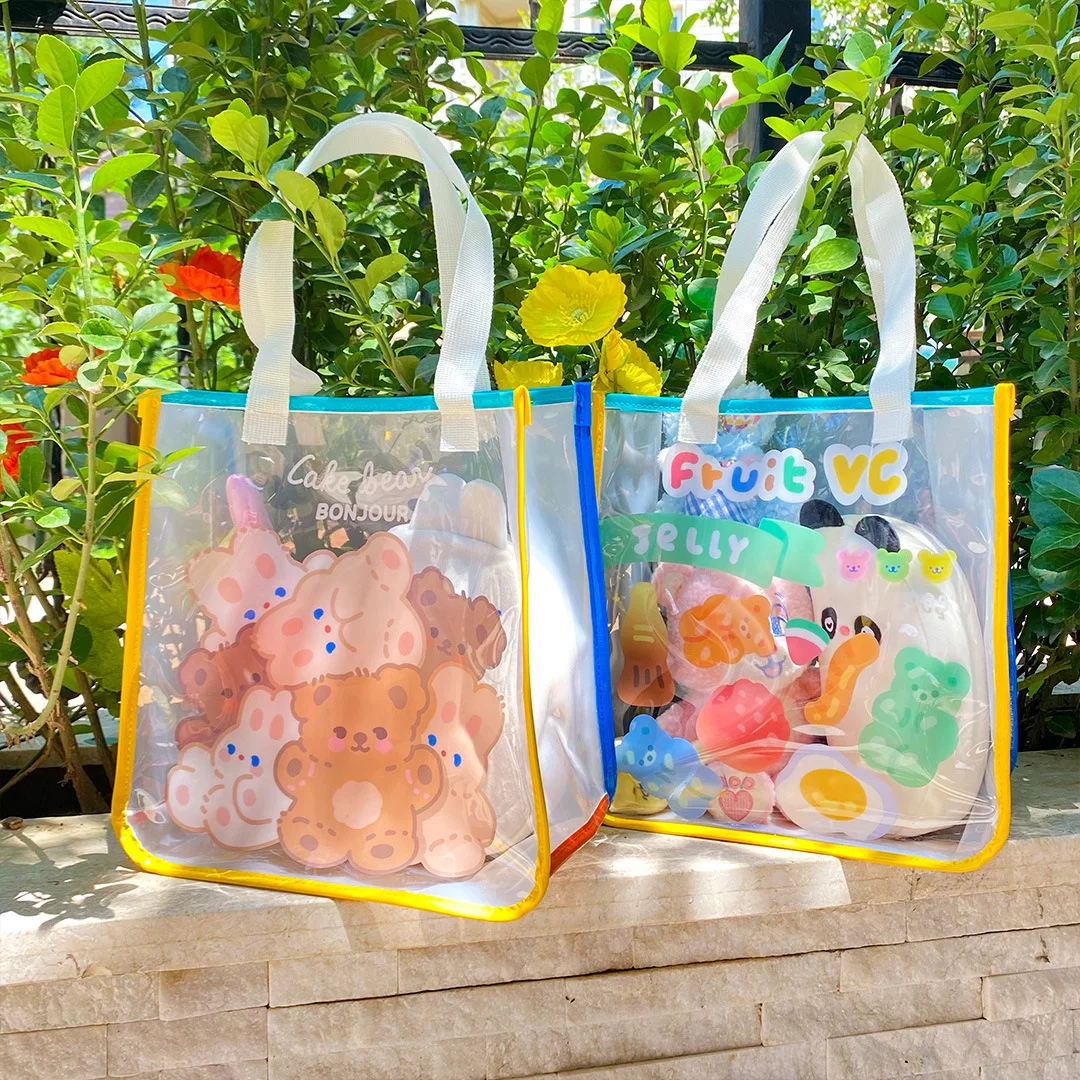 Bentoy Milkjoy Bear Handbag Transperant Laptop Case Holder Fashion Jelly Large Capacity Daily Girl Shoulder Beach Tote Bag