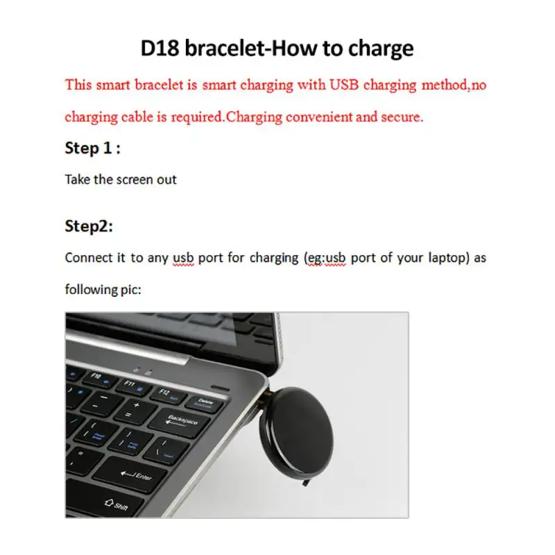 USB plug-in charging design, remove the wrist strap to plug in and charge, easy and convenient.