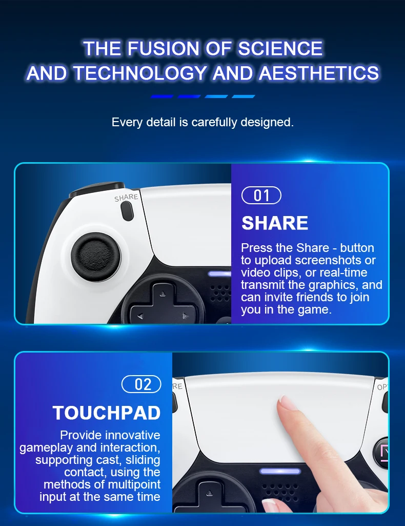 5. Уникальный дизайн кнопок SHARE, просто нажмите кнопку SHARE, чтобы загрузить скриншоты или видеоклипы, или транслировать игровой экран в режиме реального времени, делиться замечательными играми по всему миру
