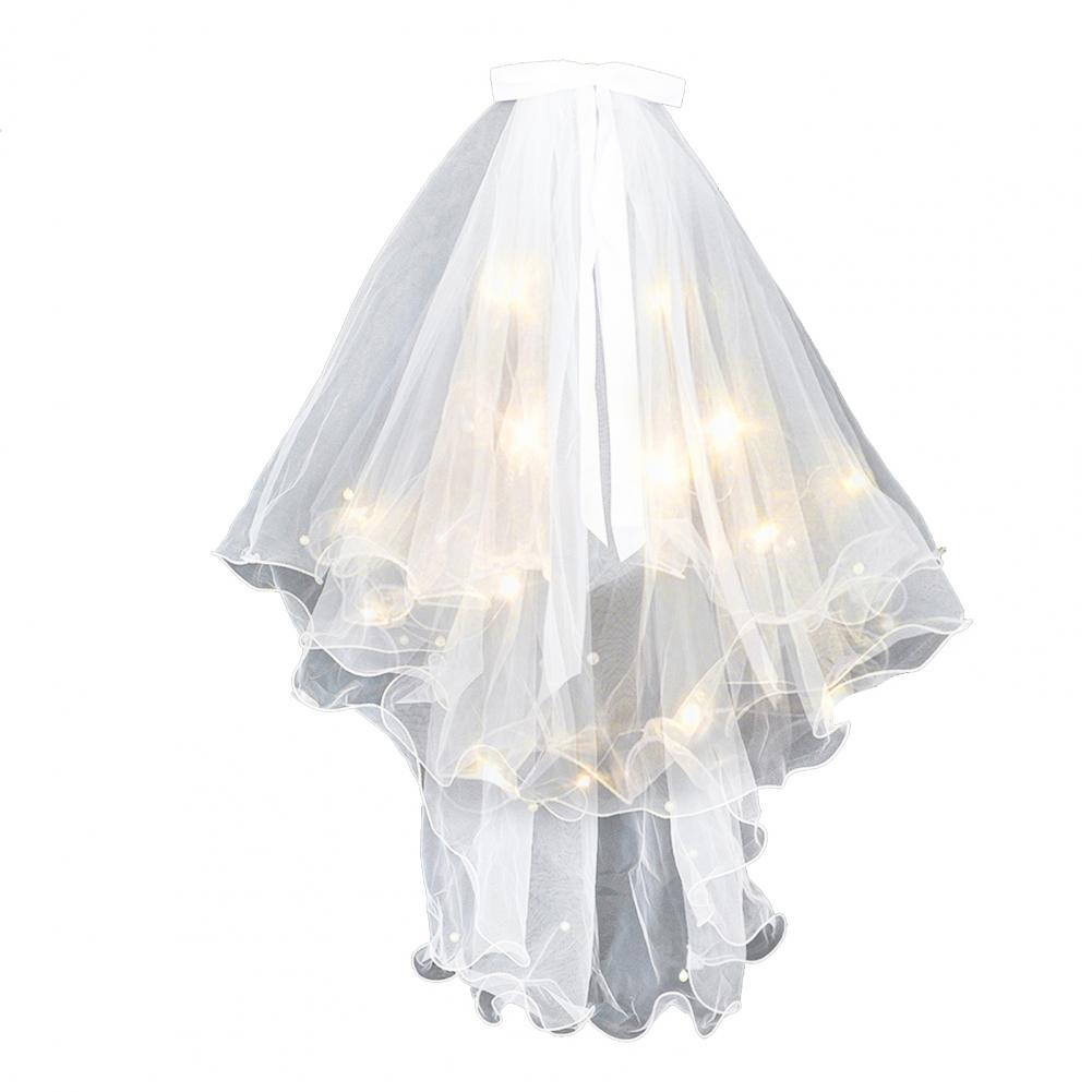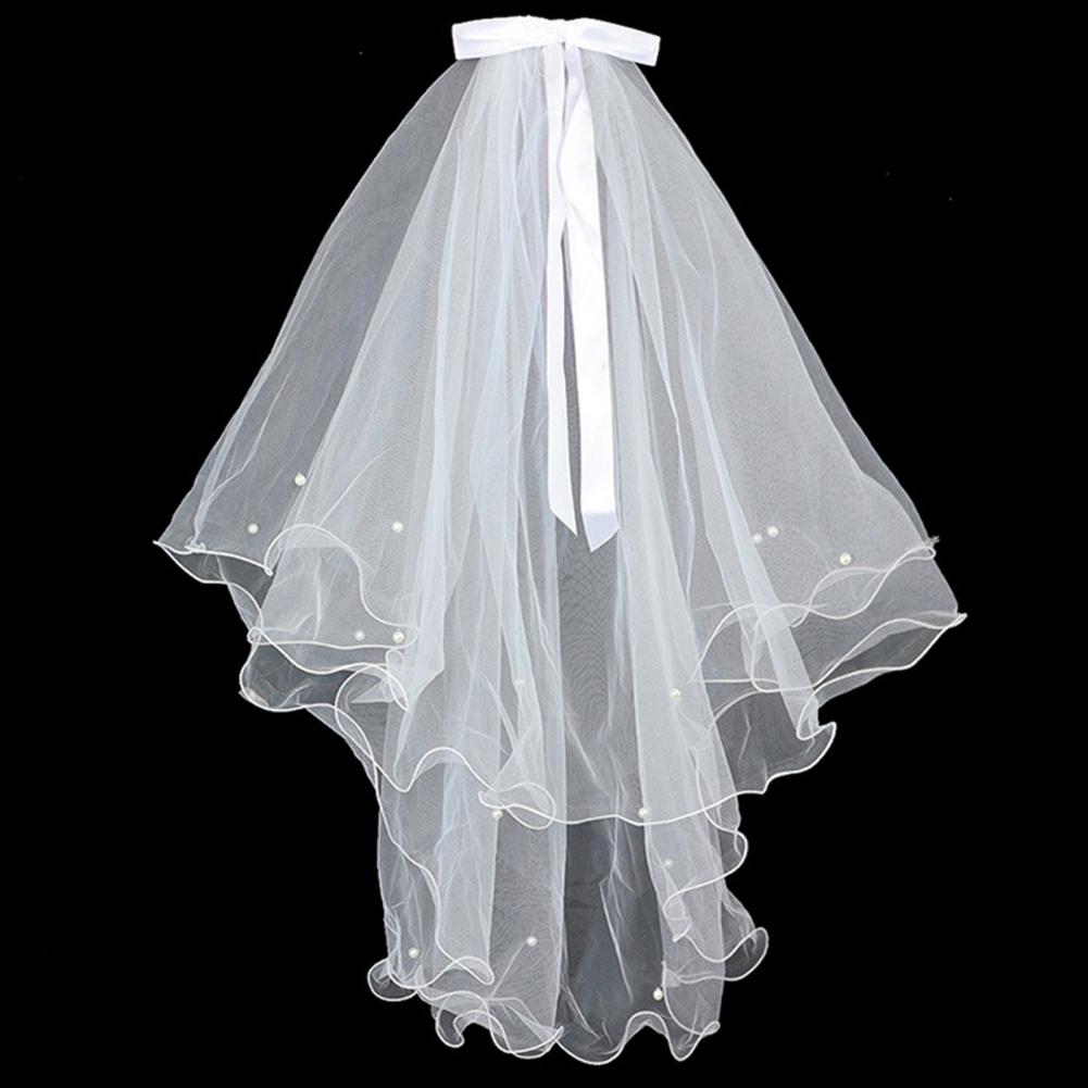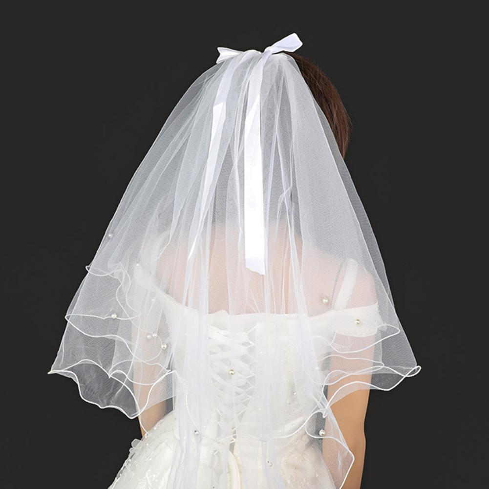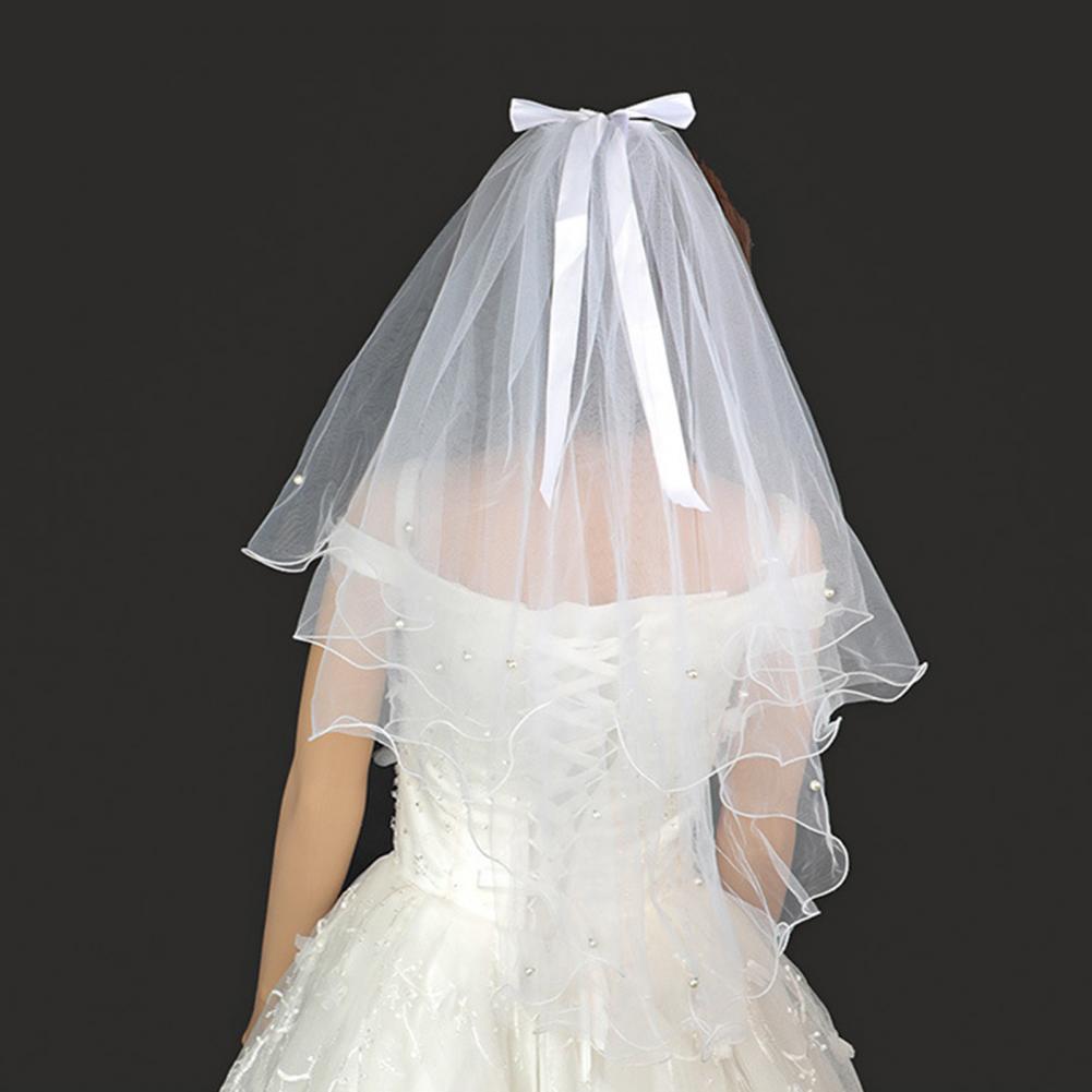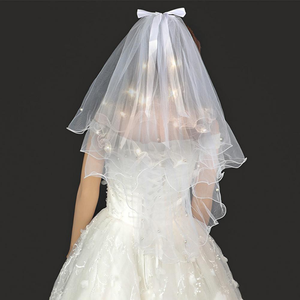 Bow-knot Design Wedding Veils Eye-catching Dual Layer Glowing Veils Breathable Net Yarn Long Bow-knot Bridal Veils for Ladies