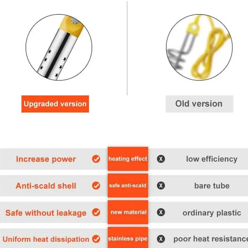 The 2500W high-power immersion water heater can quickly heat water without wasting too much electricity. In the cold winter, you no longer need to wait for a long time for warm water. When you own an immersion water heater, you can enjoy hot water anytime, anywhere in just a few minutes.
