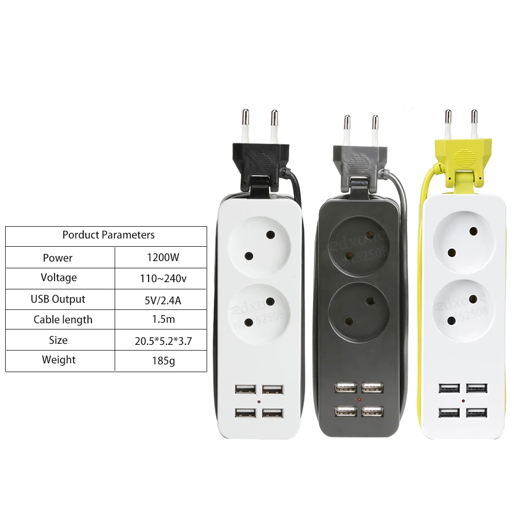 Штепсельная Вилка европейского стандарта Мощность пропилен-каучука прокладки с 4 USB Портативный пролонгации гнезда штепсельной вилки 1,5 м кабель переменного тока Мощность Путешествия адаптер USB смарт-телефон Зарядное устройство