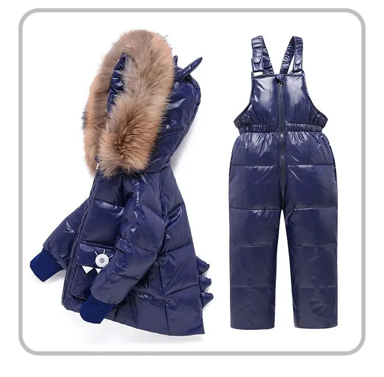 Наименование товара:Зимние теплые комплекты одежды для детей парка с натуральным мехом для маленьких девочек детский лыжный костюм Детский пуховик + комбинезон