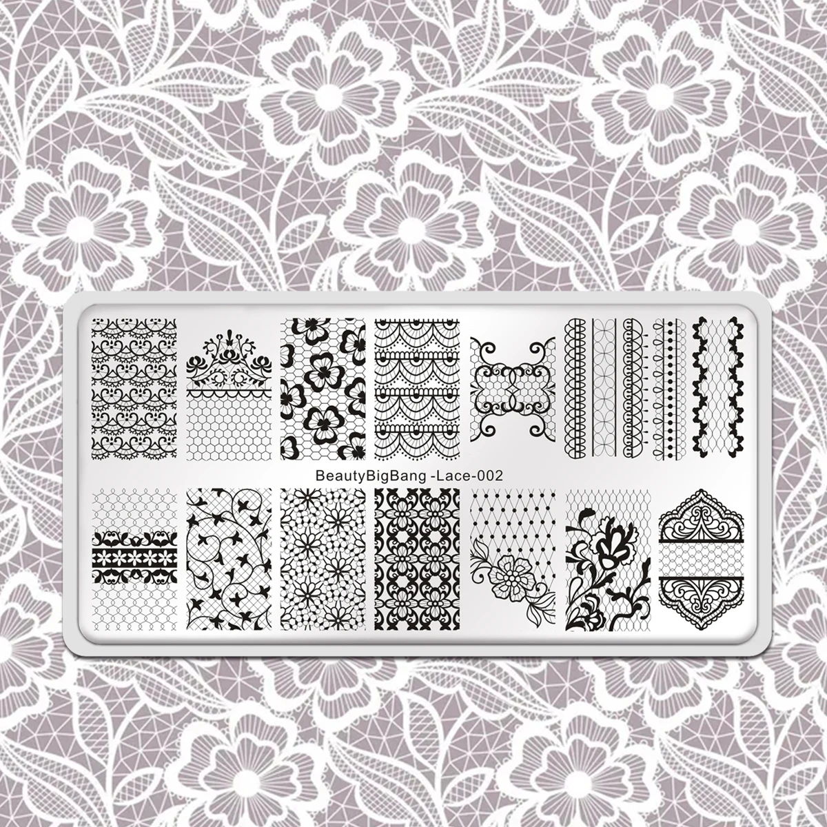 Beautybigbang пластина для штамповки ногтей DIY кружево 002 полосатый цветок корона сексуальный узор дизайн ногтей изображение маникюрный Шаблон трафарет инструмент